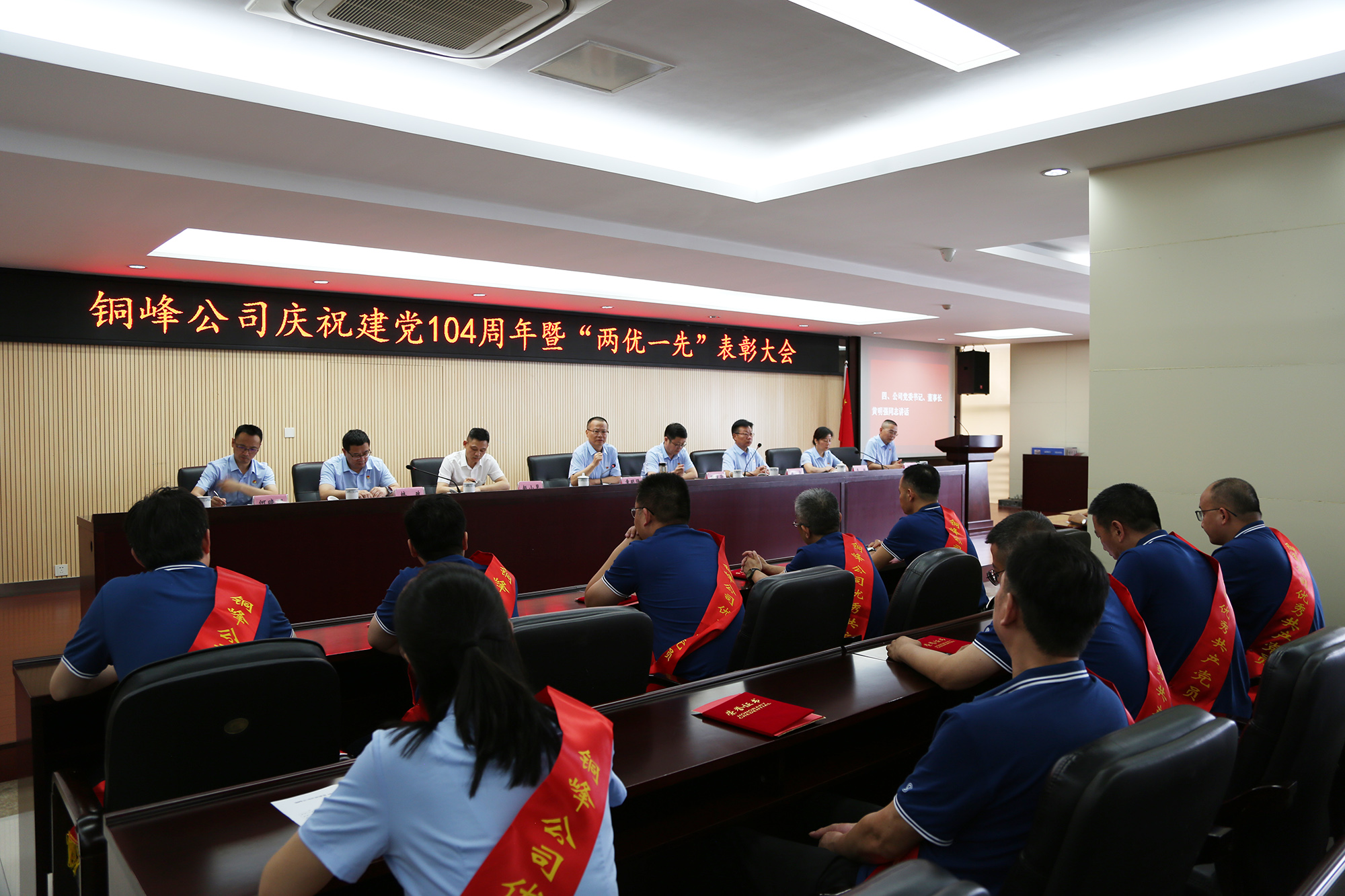 為熱烈慶祝中國共產(chǎn)黨成立104周年,表彰先進、樹立榜樣,激勵廣大黨員干部職工在新征程上展現(xiàn)新作為,6月27日下午,公司在辦公大樓二樓職教室隆重召開慶祝建黨104周年暨“兩優(yōu)一先”表彰大會。公司黨委書記、董事長黃明強出席大會并講話,黨委委員、總經(jīng)理鮑俊華宣讀表彰決定,黨委副書記潘世宇主持會議并就貫徹落實會議精神作出部署。公司黨委領(lǐng)導(dǎo)班子成員和公司級黨員領(lǐng)導(dǎo),紀委委員,各黨(總)支部書記、委員,“兩優(yōu)一先”表彰對象、黨員代表、新黨員、入黨積極分子代表等參加會議。