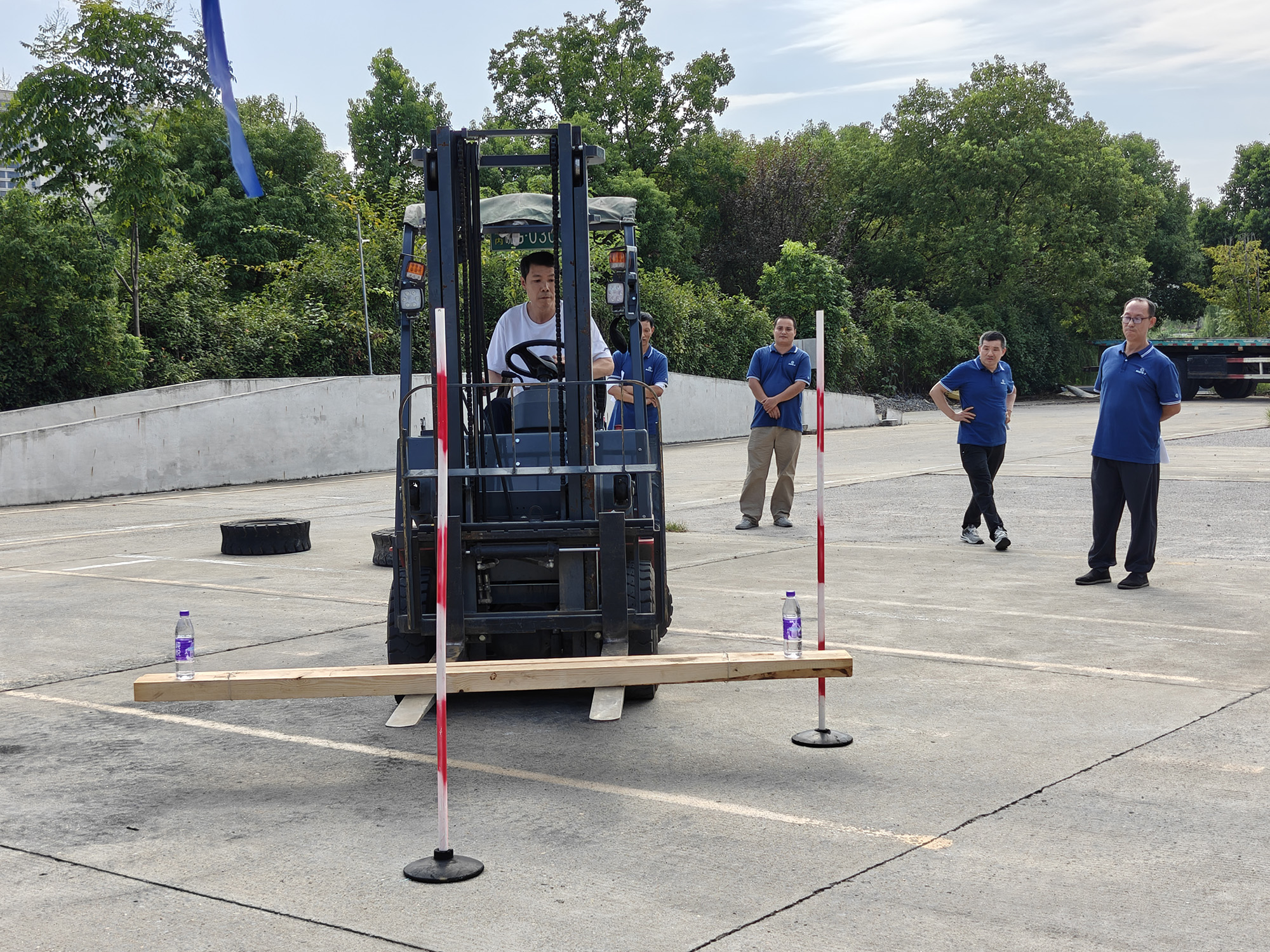 叉車技能比武側(cè)重于選手的操控熟練性與心理素質(zhì)。項(xiàng)目設(shè)置緊密貼合實(shí)際作業(yè)場景,要求選手在限定時(shí)間內(nèi)完成轉(zhuǎn)向往返、托盤精準(zhǔn)移庫碼放等動(dòng)作,并在繞障礙物操作過程中確保托盤上礦泉水瓶保持穩(wěn)定,不得掉落。競賽不僅要求速度,更注重操作的平穩(wěn)性與準(zhǔn)確性,充分體現(xiàn)出高標(biāo)準(zhǔn)的作業(yè)要求。